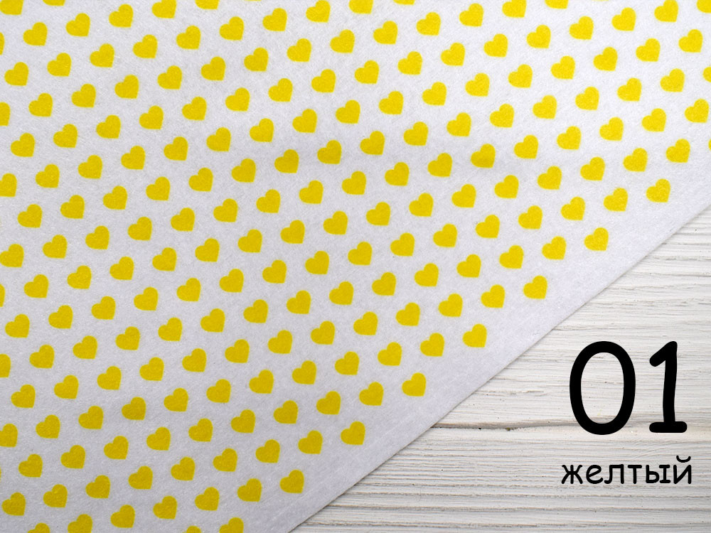 Білий фетр у сердечках - №1 жовтий (Корейський м'який 1,2 мм)